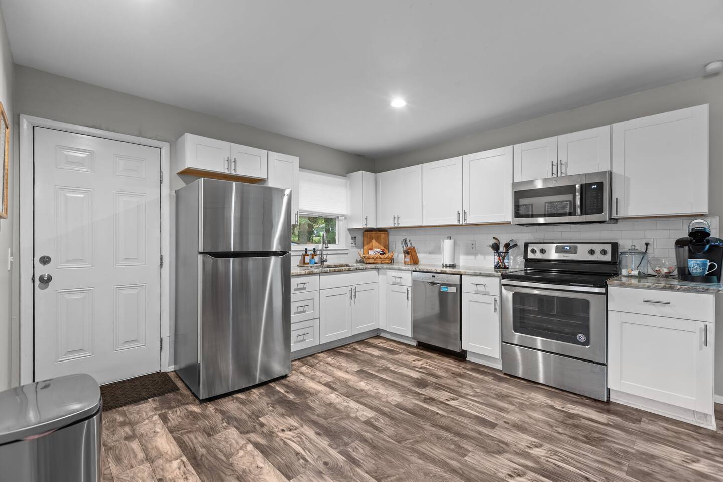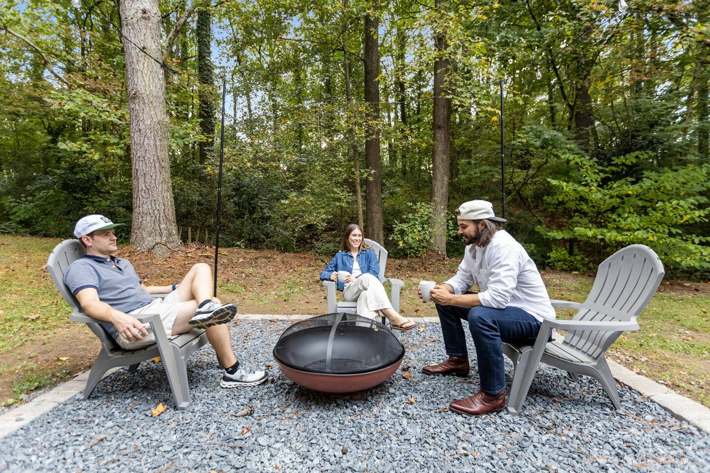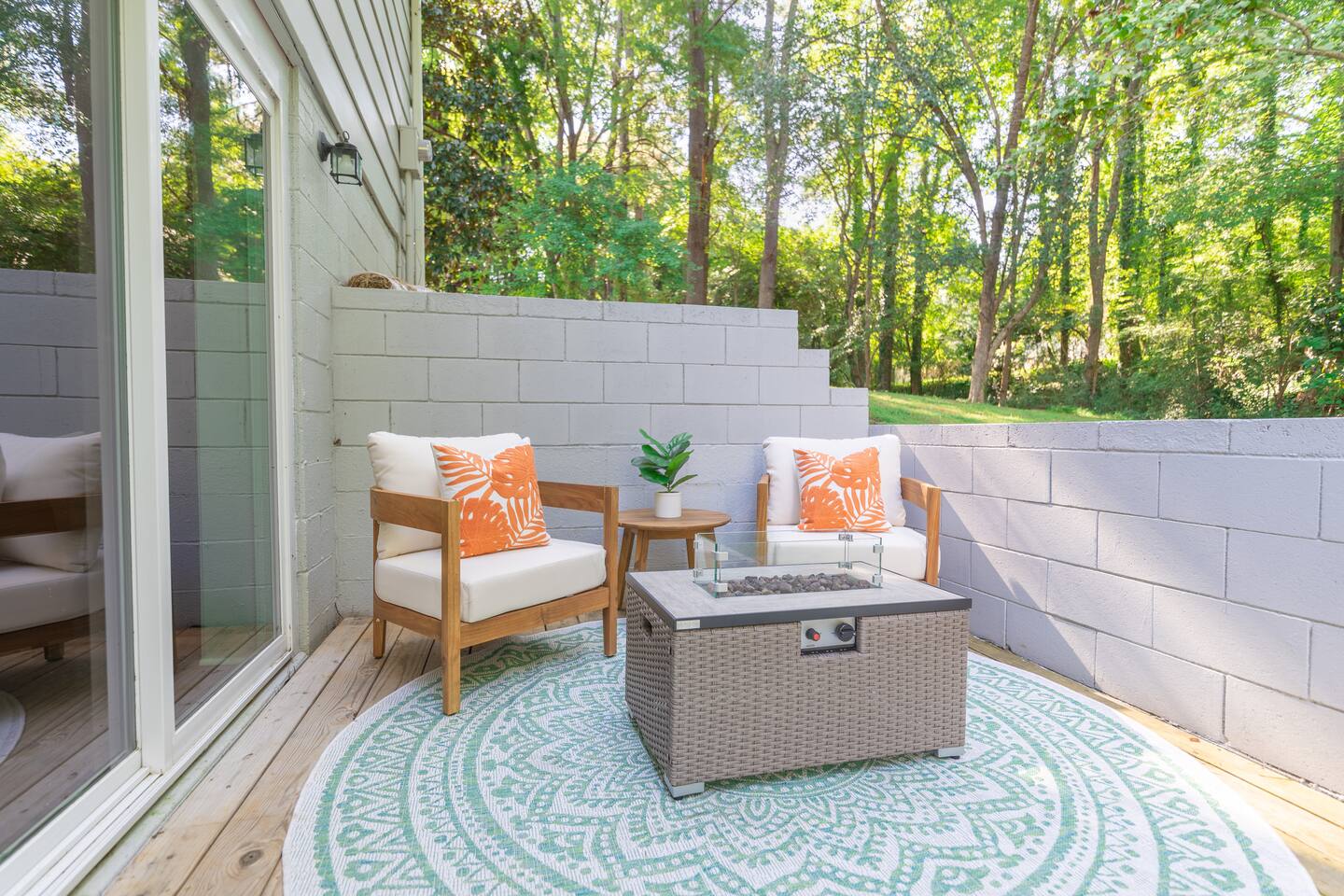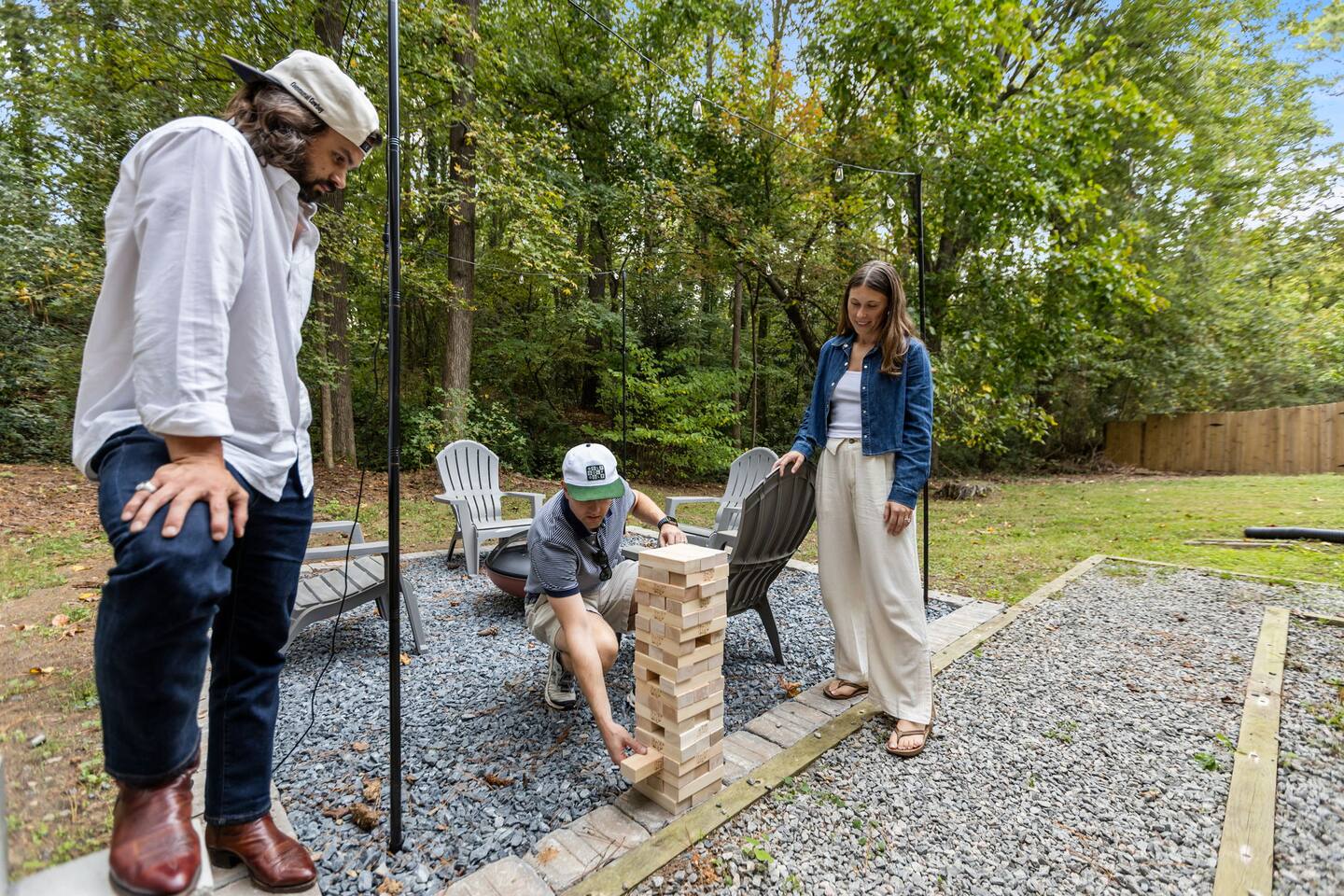 * You will enjoy exclusive access to the entire 2,000-square-foot private retreat, offering expansive interiors and thoughtfully designed spaces perfect for relaxing, gathering, and creating unforgettable memories near Raleigh. * Unwind beneath the stars at the serene backyard fire pit, where towering trees and the gentle melody of a flowing creek create a peaceful, storybook setting. * The home features two spacious living lounges, a dedicated game room, 5 beautifully appointed bedrooms, 7 comfortable beds, 3 full bathrooms, a private patio, and a convenient in-home laundry area. * The primary suite is a tranquil sanctuary with its own elegant en-suite bathroom, offering privacy and comfort. * Curated amenities include luggage racks, a fully equipped modern kitchen, generous closet space, and premium toiletries for a seamless stay. * Tucked away at the end of a quiet cul-de-sac, the home offers exceptional privacy, calm surroundings, and a true escape from the everyday. * A long private driveway accommodates up to 3 vehicles, with additional easy parking available nearby. * Designed with comfort in mind, the home includes main-floor bedrooms and walk-in showers, offering ease and accessibility for all guests.