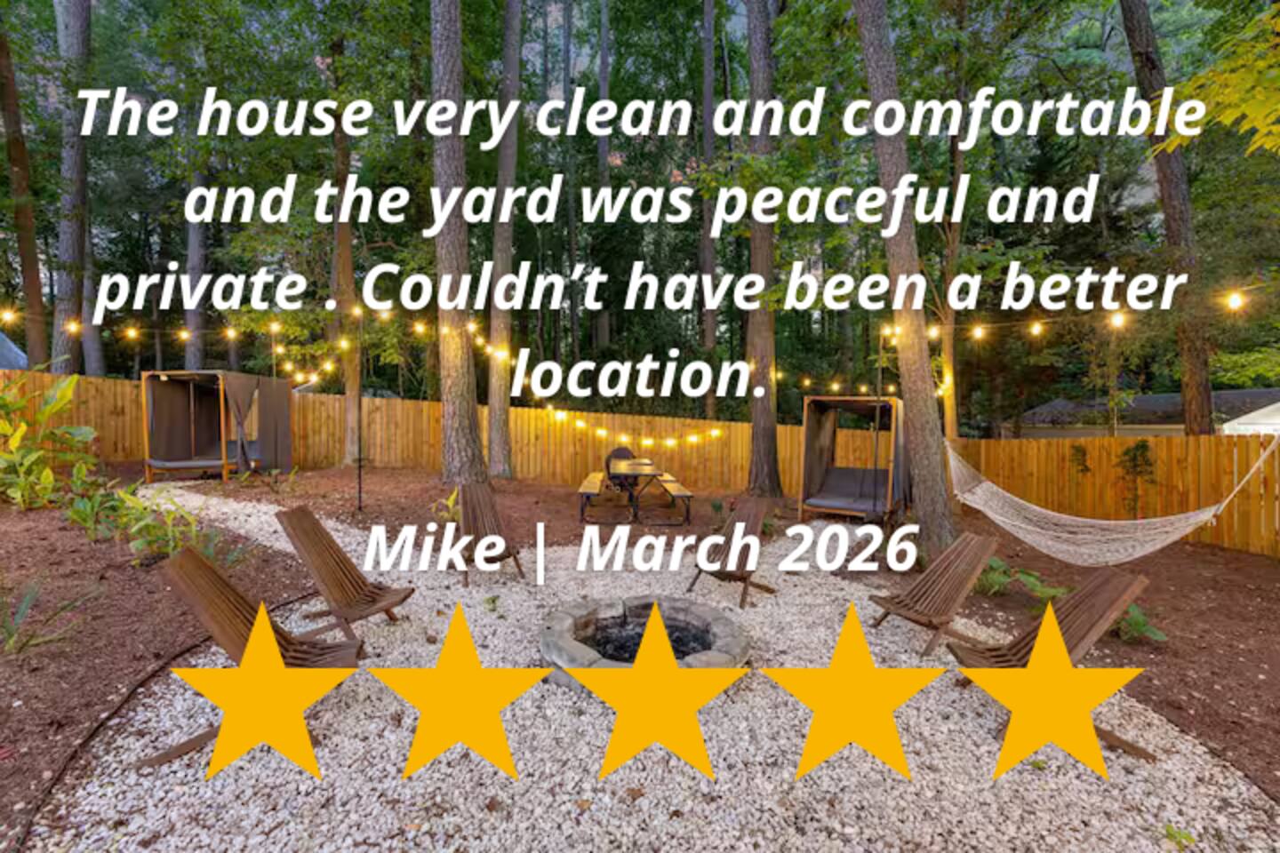 - Enjoy the fire pit in the newly landscaped backyard surrounded by beautiful trees -Interior redesigned for a beautiful modern escape - You'll have access to the entire home including three bedrooms, two full bathrooms, living room, and fully stocked kitchen with access to the laundry room if needed - The master bedroom has an en-suite full bathroom - Amenities provided for your unique stay include an outdoor shower, outdoor dining experience, multiple day beds, hanging hammocks, and fire pit. - Long driveway with room to park multiple vehicles with additional street parking if needed