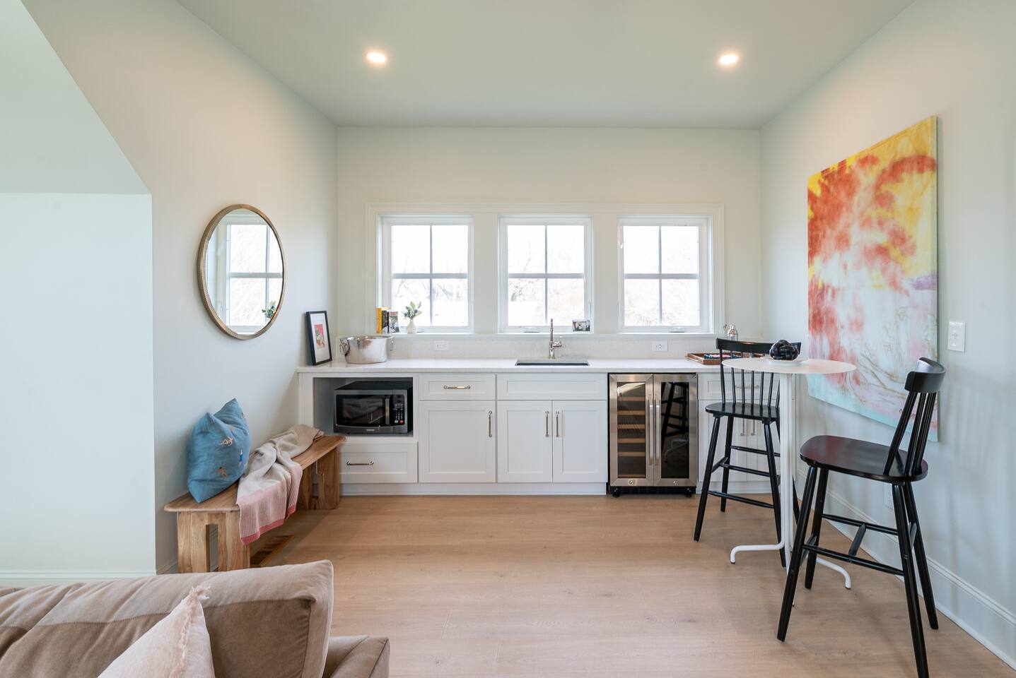 Guests will access the house through the front door. A unique smart door lock PIN will be shared upon booking. Guests will have exclusive access to the house for their stay.