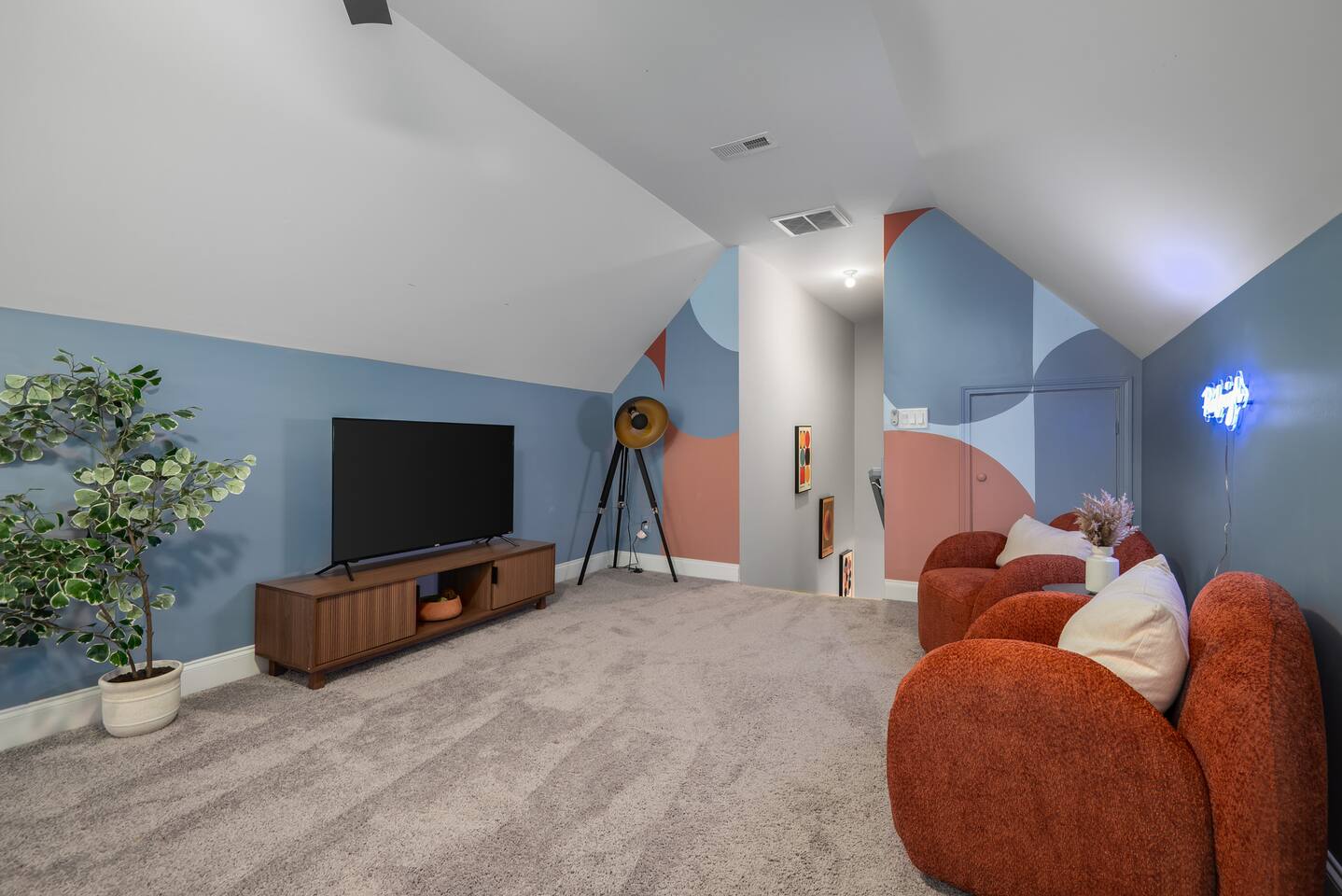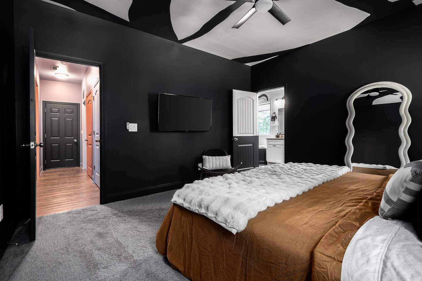 Every room was carefully designed and curated by local NC interior designer, Sierra Sweeney and muralist Natalie Robinson. PLEASE NOTE: We take guest security and safety seriously. No fraudulent bookings. After booking, guests must e-sign an easy, online hotel-style rental agreement. We may request an ID selfie upload for first- time stays or if you have no traveler review history, and either a damage hold (refundable) or damage waiver (non-refundable). Details in the House Rules.