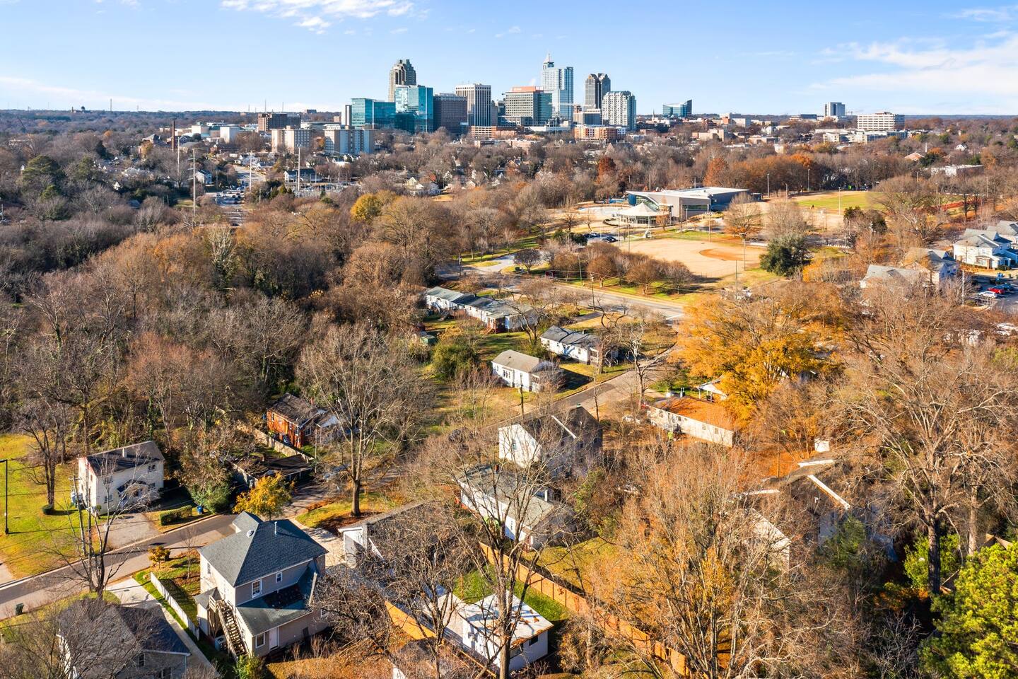 Just south of downtown in the historic South Park neighborhood, near the newly reopened John Chavis Memorial Park. This is a mixed-income neighborhood undergoing a lot of change, with brand-new homes being built right next to existing older ones. I've always felt safe here, but if you are sensitive to occasional noise or unaccustomed to city living, this may not be the right place for you.