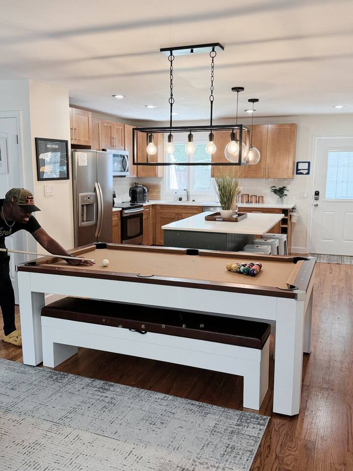 Gather with your group between the two houses that give all guests the space they need! This downtown property is themed for the 3 beloved college basketball teams that make up Tobacco Road- Duke, NC State, and UNC. Up to 12 guests will love playing billiards, shooting hoops, or watching the game! 🌳 0.2 mi to Chavis Park 🚶 1 mi to Downtown Moore Square 🎤 1.2 mi to Red Hat Amphitheater 🏫 3.5 mi to NC State 🎤 4.4 mi to Walnut Creek Pavillion 🏟️ 8.4 mi to PNC Arena ✈️ 16 mi to RDU