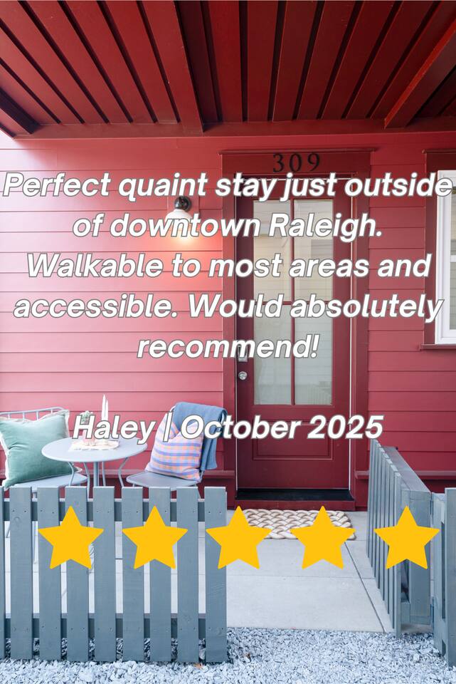 This brand-new modern guest house perfectly blends style and function, offering a sleek escape with all the stay essentials. π¦0.2 m to The Merrimon-Wynne House πΆ0.9m to Downtown (Moore Square) πΆ1m to Glenwood South π΄1.1 miles to Transfer Co. Food Hall π1.4m to the Raleigh Convention Center π’1.5m to Raleigh Iron Works π€1.6m to Red Hat Amphitheater π«2m to NCSU π€5.3m to Walnut Creek Pavillion ποΈ6.9m to PNC Arena βοΈ13.3m to RDU