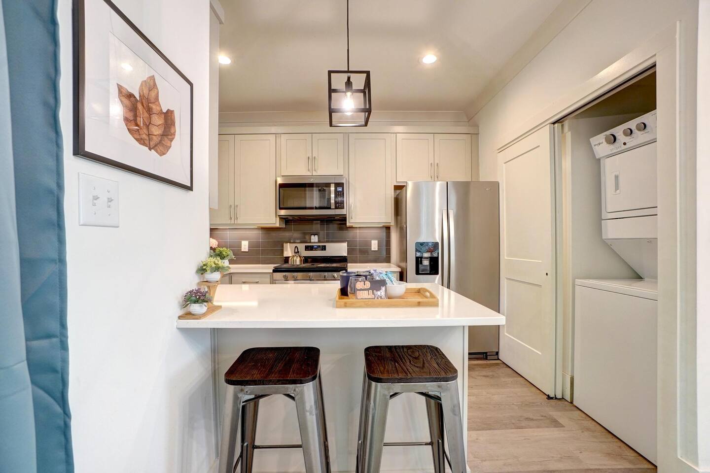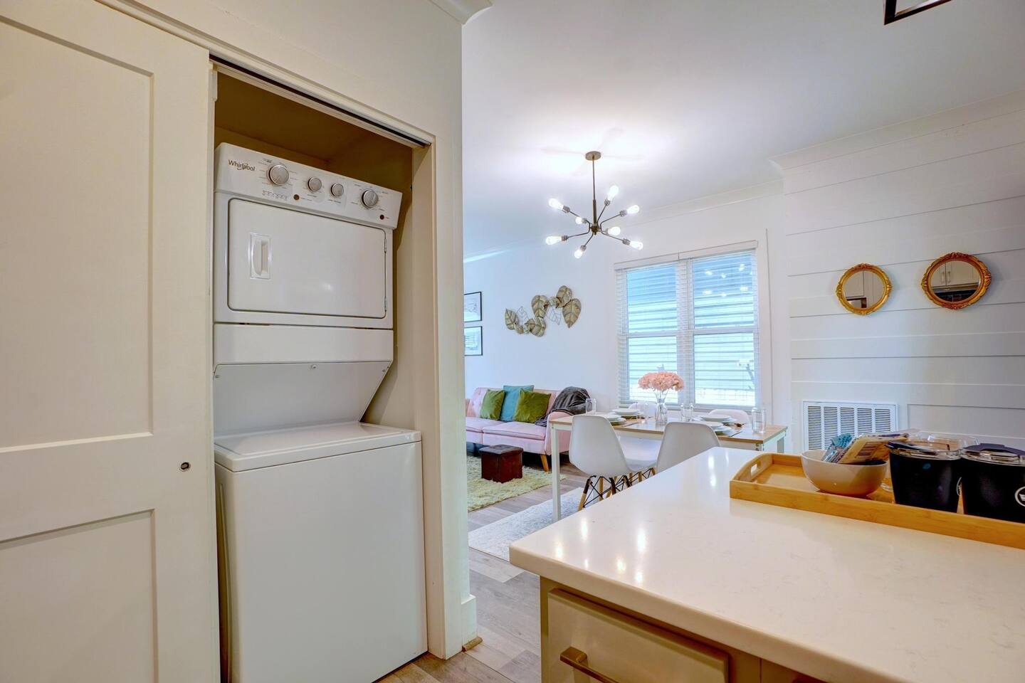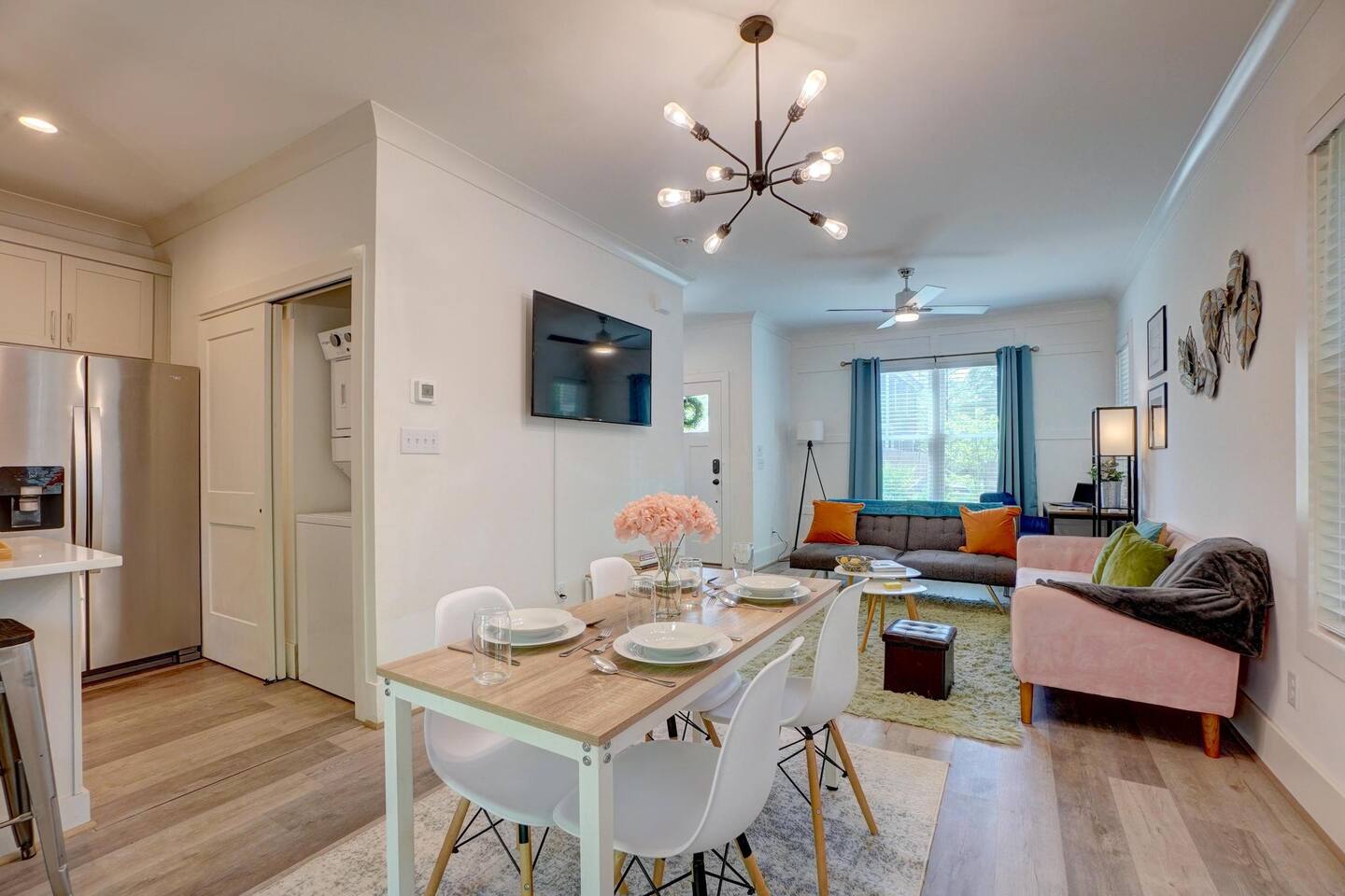 ☀ King Primary w/ensuite bathroom ☀ Queen bed in bedroom #2 ☀ Fully stocked kitchen ready for short or long term stays. ☀ Washer and dryer in the home. ☀ Work space area for remote work/school - Fast wifi. ☀ Living room and master bedroom have smart TVs. ☀ Fully fenced in yard for dogs and entertainment. ☀ Family Friendly w/ pack n' play, kids dishware, boardgames, books and toys.