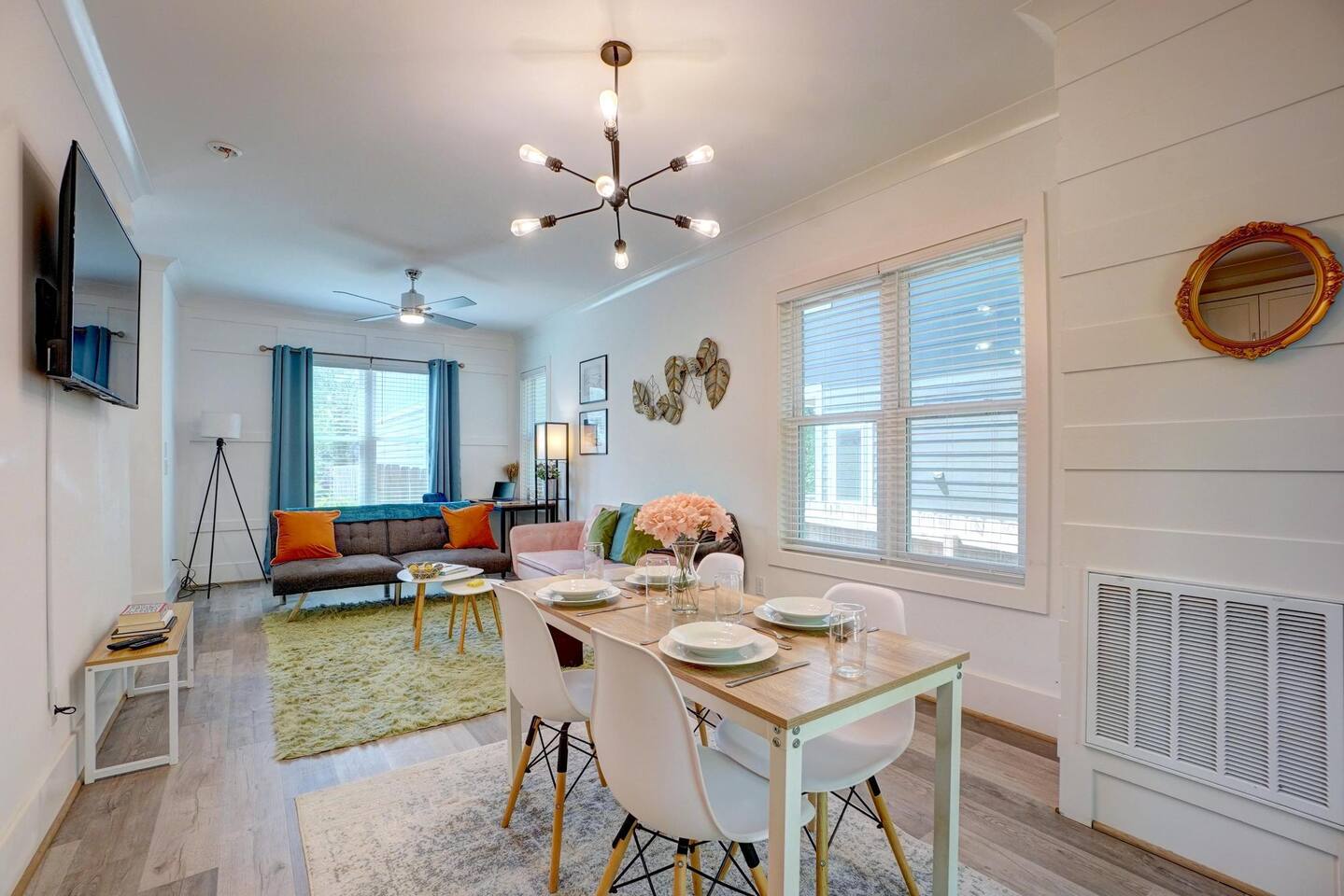 This tastefully decorated modern home is colorful, bright and cozy located near downtown Durham. Whether in town visiting your college-aged child for a weekend or graduation, for business for a conference, or just wanting to explore and live in Durham, look no further! ☀ DPAC, Durham Bulls and Duke are 5-8 mins! 12 mins to RTP. ☀Comes with a fully FENCED backyard! ☀Up to 2 pets (dogs only) allowed. Message us if you need an exception made for more than 2 pets or cats. $35 fee for a second pet